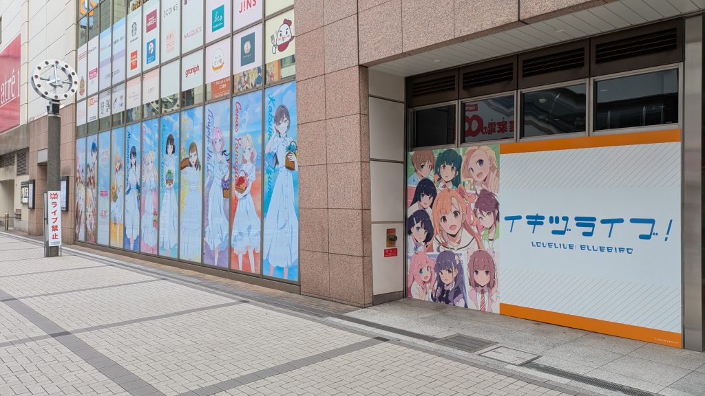 館外ラッピングは、ラジオ会館方面と駅直結の出入り口のみ。ラブライブシリーズとのコラボというと結構盛大にやるイメージがありますが今回は、こぢんまりしてました。