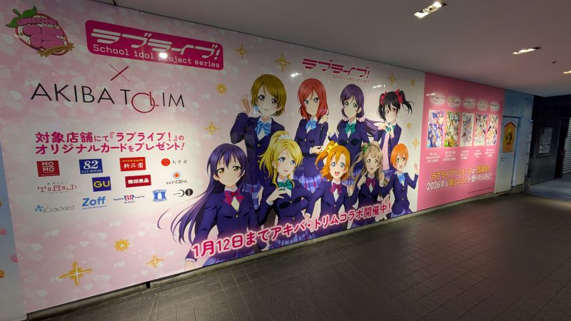 2025年12月26日からアトレ秋葉原でラブライブ!シリーズとのコラボが開始した。ラブライブ!シリーズとのコラボは、結構頻繁に行われているが今回は、15周年を迎えたμ’sのメンバーがアトレ秋葉原をジャックしている。